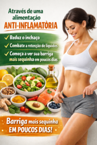 Através de uma alimentação anti-inflamatória, você reduz o inchaço, combate a retenção de líquidos e começa a ver sua barriga mais sequinha em poucos dias