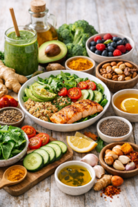 Aprender uma alimentação anti-inflamatória prática, que desincha o corpo, reduz inflamação e mantém a barriga mais sequinha.